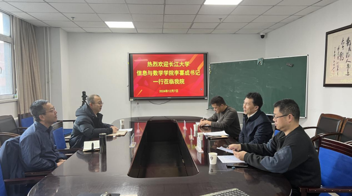 12月7日下午,长江大学信息与数学学院党委书记李喜成一行三人来beat365官网进行调研和招聘宣讲。学院党委书记冯济骞,学院党委副书记、副院长陈吉平,学院团委书记、研究生专职辅导员王婷参加了会议。会议由陈吉平主持。