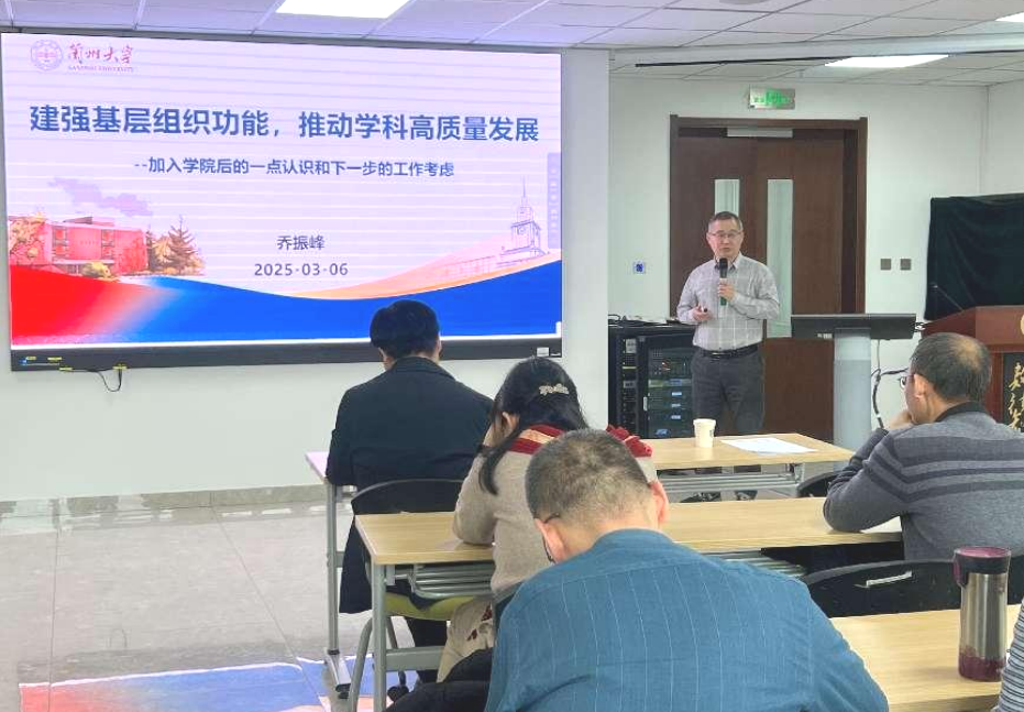 最后,党委书记乔振峰以《建强基层组织功能,推动学科高质量发展》为题谈了自己加入学院后的一点认识,并从四个方便介绍下一步的工作计划:一是解放思想,强化有组织的发展。从学院文化建设、师资队伍建设双维度实施重点突破,培育大团度、承担大项目、培育大平台、产出大成果。二是建强功能,释放基层组织活力。建全建强学院管理体制和组织机构,明晰权、责、利,优化资源配置,释放基层组织的活力,做好育教融合、师生融合、本研融合、科教融合。三是以本为本,筑牢学科发展根基。强化本科教育核心地位,做好“四个融合”驱动的“334”拔尖人才培养,为实现本科教育教学再上新台阶奠定坚实基础,夯实学科发展根基。四是目标牵引,成就师生发展期待。通过上面三点系统性目标牵引机制,回应师生发展期待,实现个人成长与学校使命、国家战略的同频共振。
