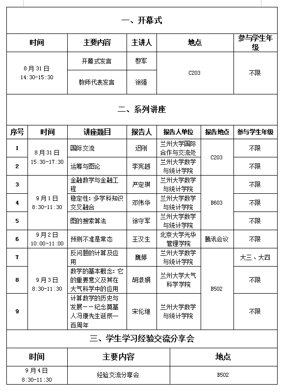 2.活动形式包括:学术报告(讲座)、教师代表与学生面对面交流、学生代表心得分享、交流等形式。