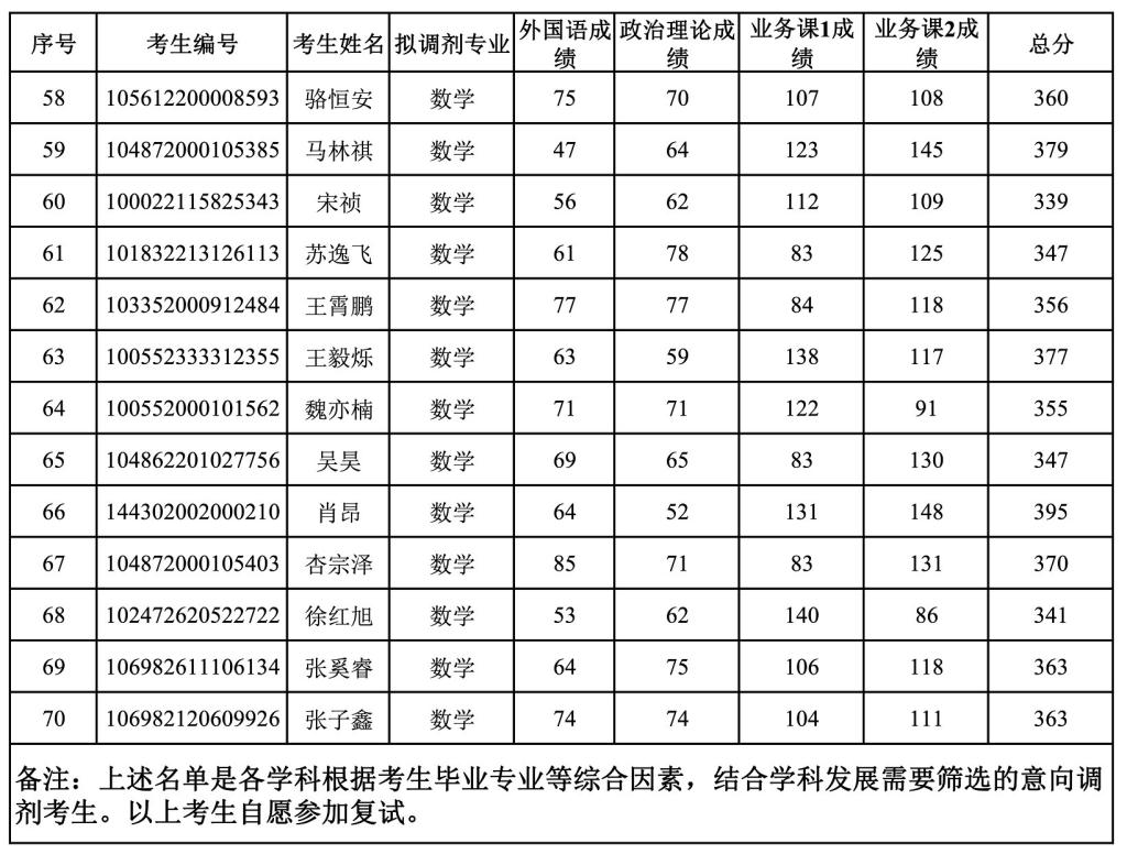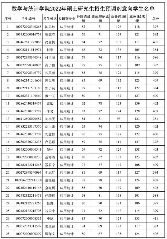 best365在线官网登录入口2022年硕士研究生招生预调剂意向学生名单