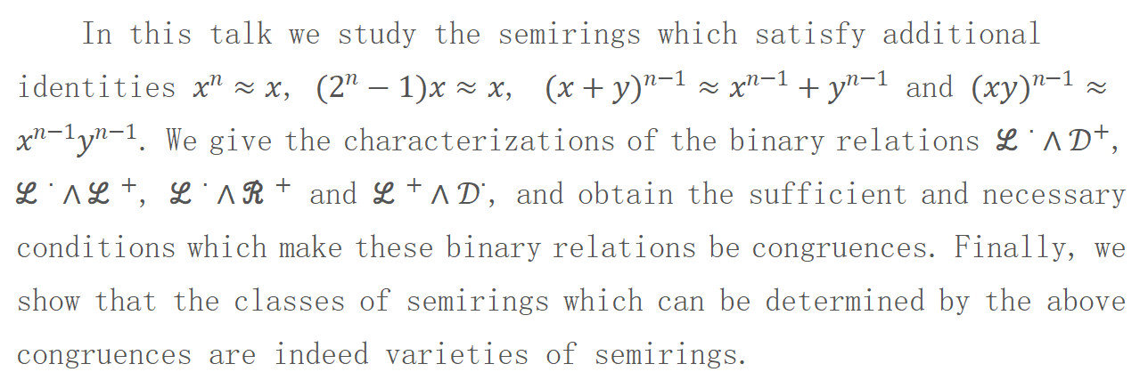 报告题目:On n-potent semiring varieties