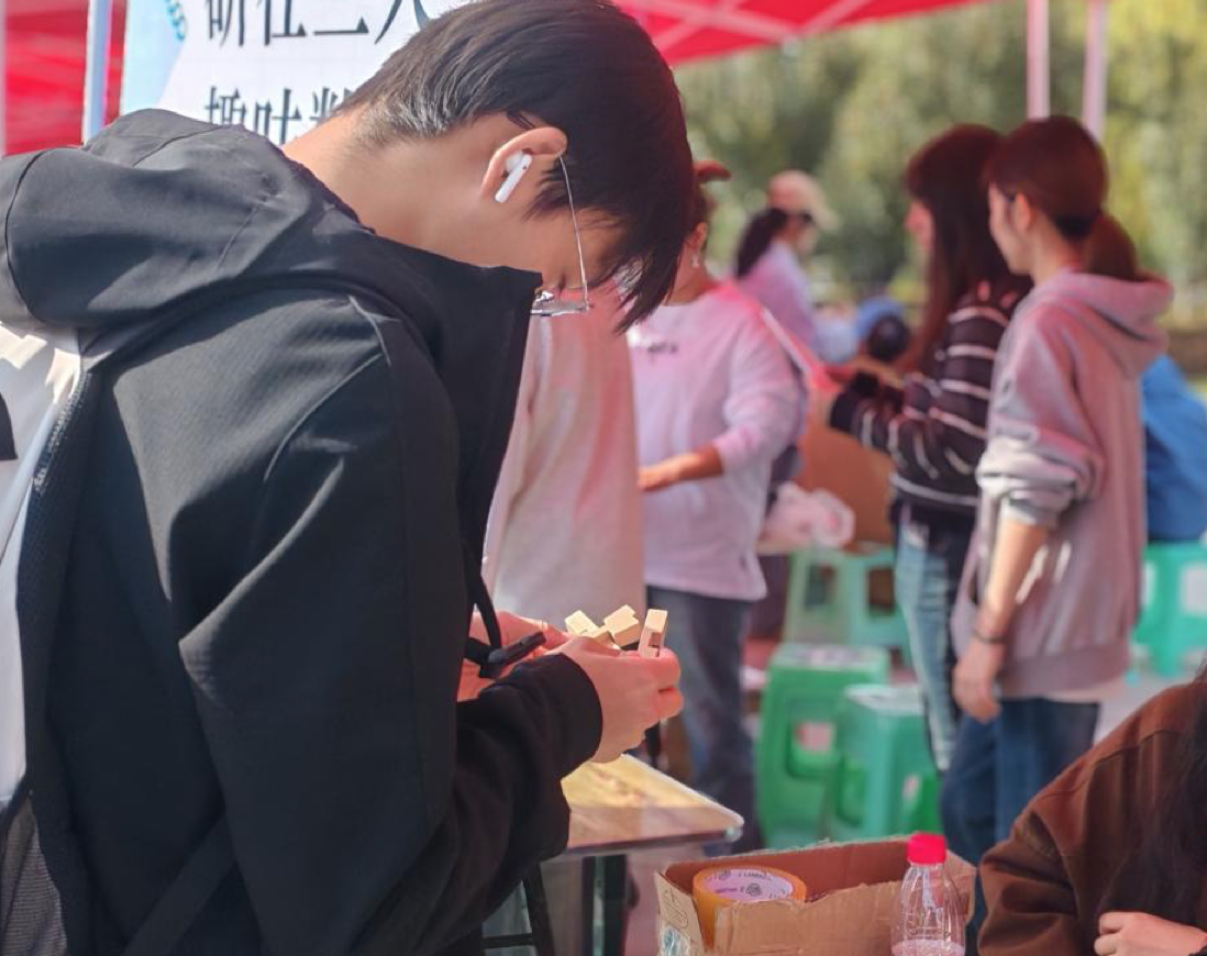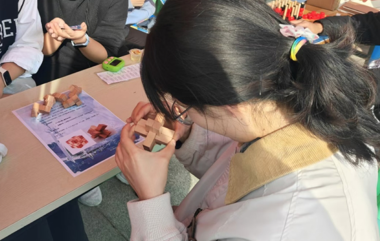 除了这些精彩的游戏,市集上还有许多引人注目的瞬间。认真钻研鲁班锁的男同学专注的背影,勇于挑战的小朋友们的好奇与探索……