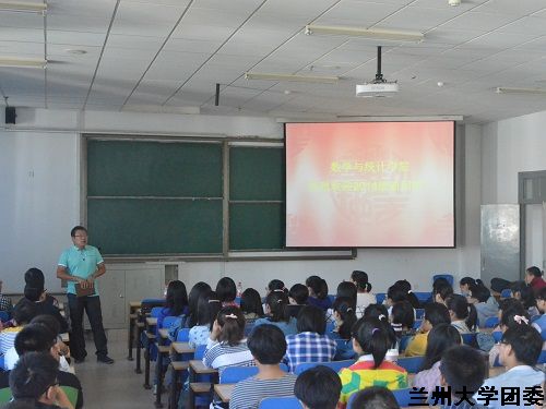 随后,由李万同院长代表全院对新生致欢迎辞,院长的字字句句都表现着学院对所有新生的欢迎与问候。紧接着,院长从优秀的教师团队、兰大数学学院的发展史、近年来学院在各方面的排名、学院特色人才培养等几个方面向新生们详细地介绍了数学学院的综合概况。