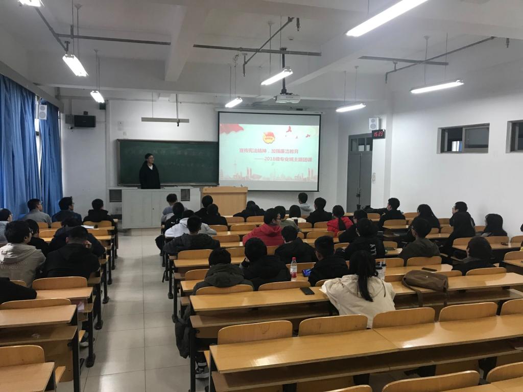 每年的12月4日是国家宪法日,为了增强广大团员的宪法意识,弘扬宪法精神,加强宪法实施,best365在线官网登录入口2018级两班团支部分别召开了以“宣传宪法精神,构建和谐校园”为主题的团课。