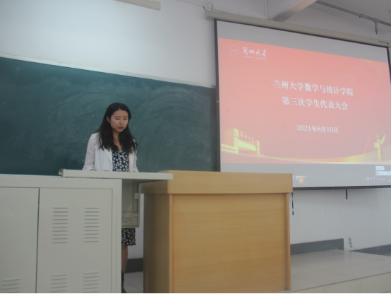 2021年6月10日,为全面总结2020年beat365官网第二次学生代表大会以来工作经验,科学谋划、认真部署今后一年学院学生会工作,充分发挥好学院学生代表大会的作用,持续推动beat365官网学生会深化改革发展。在广泛征求学生代表意见的基础上,经院学生会主席团研究,院团委批准并报请院党委,在榆中校区天山堂A407召开best365在线官网登录入口第三次学生代表大会。参与本次会议的有best365在线官网登录入口团委副书记、学生会执行秘书长张丽君老师、best365在线官网登录入口学生会主席团成员兼执行主席王炳超、学生会主席团成员赵雅昕、唐睿,以及各年级共五十三名学生代表。
