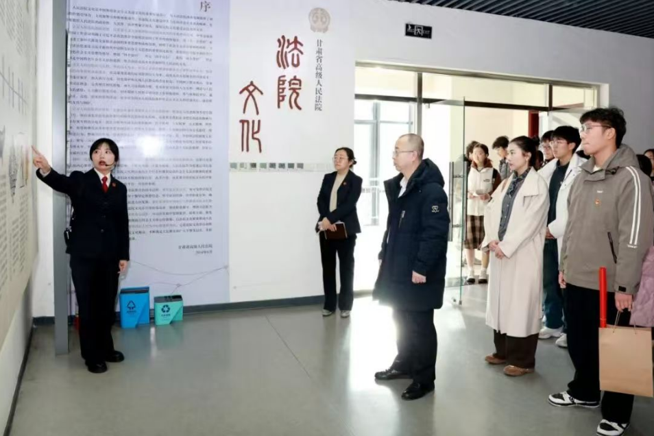 活动概况:同日下午,本科生团支部与甘肃省高级人民法院团支部共同开展支部结对共建活动。活动中,青年团员们参观了廉政文化长廊,并通过图文并茂的司法案例,深入学习法律的威严与公正,增强了法治意识。随后,在座谈交流环节中,双方就大数据管理、服务平台及法治宣传等话题展开了热烈讨论。通过交流,青年团员们深刻认识到法治精神的重要性,激发了他们为实现中华民族伟大复兴贡献智慧与力量的责任感。