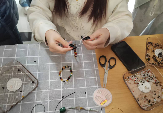 活动过程中,数院的工作人员分布在各个岗位,认真履行职责。有的工作人员在串珠区域耐心指导同学们串珠,帮助大家解决遇到的问题;有的在现场维持秩序,引导同学们有序参与活动,确保了活动的顺利进行。best365在线官网登录入口的同学们也积极参与到活动中来,她们充分发挥自己的创意,挑选各种颜色和形状的珠子,精心制作出独一无二的串珠作品。这些作品不仅展现了同学们的心灵手巧,更承载着她们对美好节日的期待。